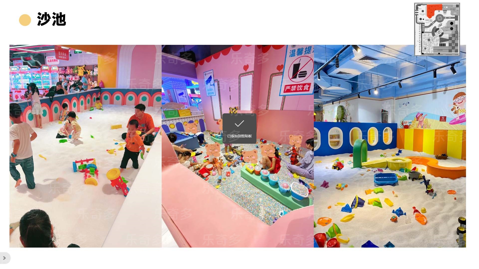 項目玩法:沙池探寶,海洋球池,波浪滑梯,互動投影,組合滑梯,手工區,彈跳迷宮、兒童小蹦床,角色扮演,公主屋,親子餐廳等。