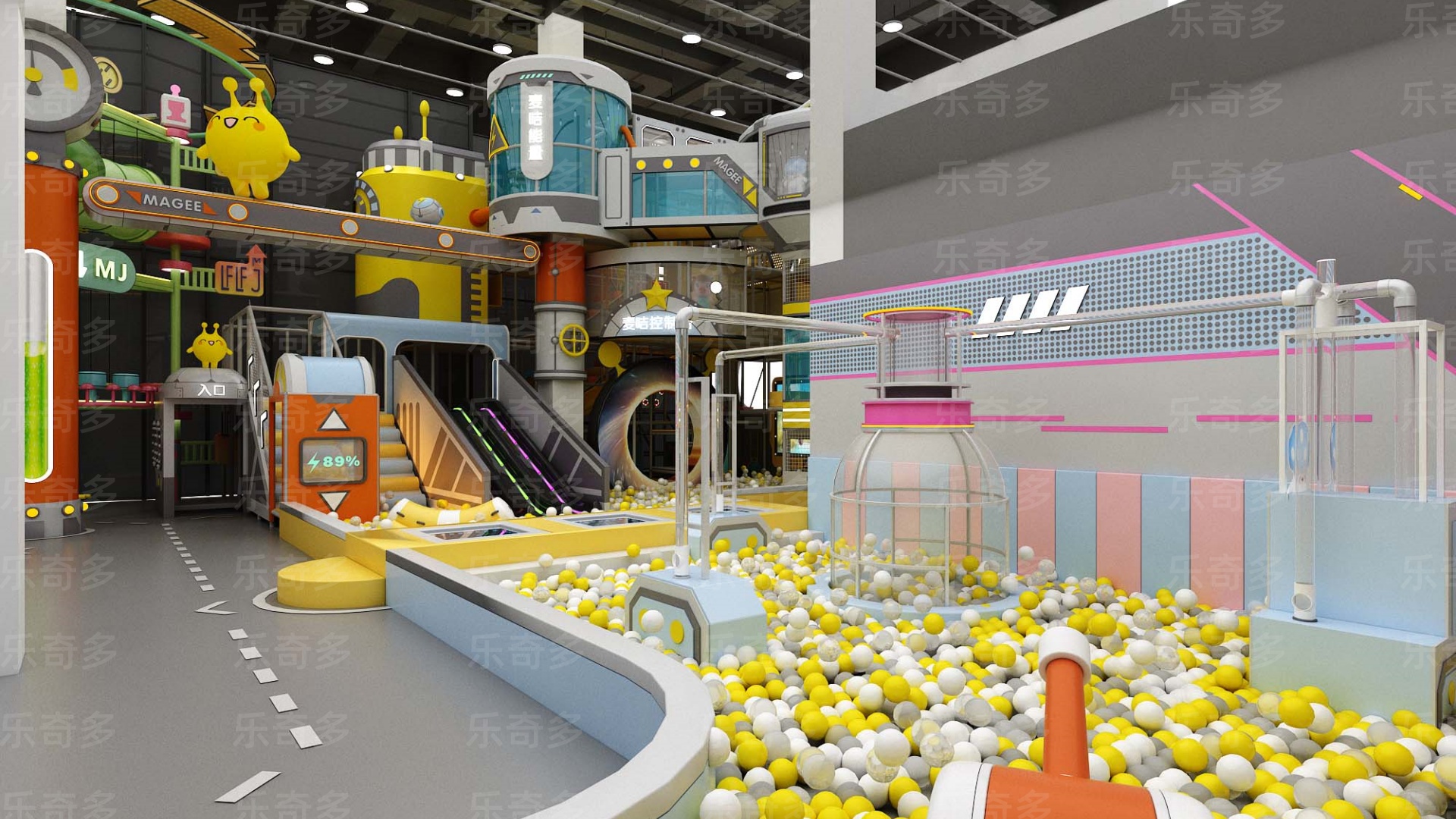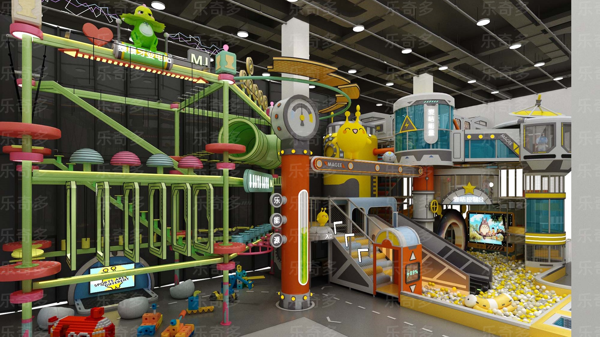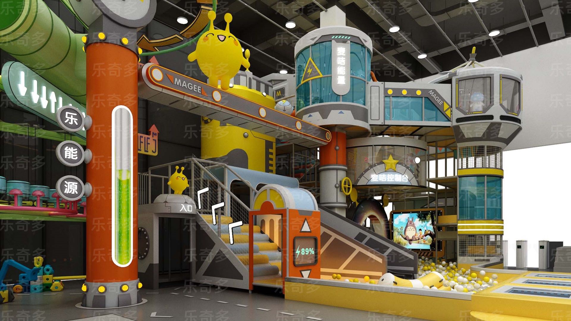 項(xiàng)目玩法:沙池探寶,海洋球池,波浪滑梯,互動(dòng)投影,組合滑梯,手工區(qū),彈跳迷宮、兒童小蹦床,角色扮演,公主屋,親子餐廳等。