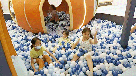 (歡樂海洋球)人人偏愛的顏色各有不同,但幾乎沒有人會拒絕藍(lán)色,此次采用藍(lán)色為主基調(diào),以其他色系進(jìn)行搭配點(diǎn)綴。藍(lán)色,非常純凈,通常讓人聯(lián)想到海洋、天空、水、宇宙。作為自然界最為常見的色彩,藍(lán)色表現(xiàn)出一種冷靜、安詳與廣闊,具有讓人安靜的力量。放眼望去仿佛是一片藍(lán)色的海洋,小朋友們在球池翻騰跳躍,仿佛掀起的一片片的波浪,其實(shí)這是為太空花園創(chuàng)造生機(jī)的“蓄能池”。#能量源泉 #